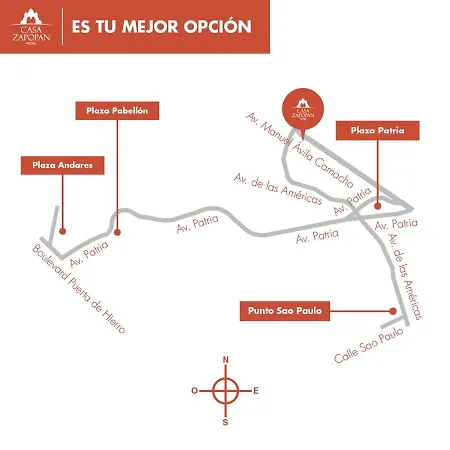 Στήλη της Νίκης Rotonda de los Hombres Ilustres απέχει περίπου 15 λεπτά με αυτοκίνητο από αυτό το ξενοδοχείο, ενώ Basilica de Zapopan είναι σε απόσταση μόνο 11 λεπτών με τα πόδια. Η περιοχή περιλαμβάνει θρησκευτικά αξιοθέατα όπως Εκκλησία Templo Expiatorio del Santisimo Sacramento (8 χλμ. ) Και Καθεδρικός Ναός ΓουαδαΛαχάρας (9 χλμ. ). Plaza de las Americas και Museo de Arte Zapopan απέχουν 300 μέτρα από το Casa. Η στάση λεωφορείων 5 de Mayo βρίσκεται σε κοντινή απόσταση, μόλις 5 λεπτά με τα πόδια από αυτό το ξενοδοχείο 2 αστέρων.